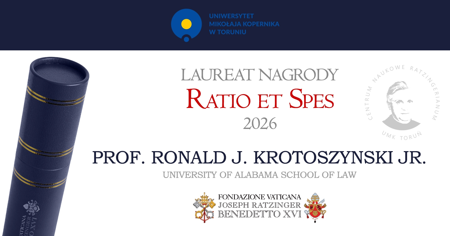 W tym roku laureatem Nagrody Naukowej "Ratio et Spes" został prof. Ronald J. Krotoszynski Jr., wykładowca w University of Alabama School of Law, gdzie pełni funkcję profesora w katedrze Johna S. Stone'a, dyrektora ds. badań naukowych oraz dyrektora Programu Studiów Konstytucyjnych i Inicjatywy na rzecz Zaangażowania Obywatelskiego. Rada Naukowa Nagrody doceniła interdyscyplinarny charakter publikacji prof. Krotoszynskiego "Free Speech as Civic Structure. A Comparative Analysis of How Courts and Culture Shape the Freedom of Speech" oraz jej tematykę nawiązującą do aktualnych problemów, które mają istotny wpływ na życie i funkcjonowanie zarówno jednostek, jak i społeczeństw.